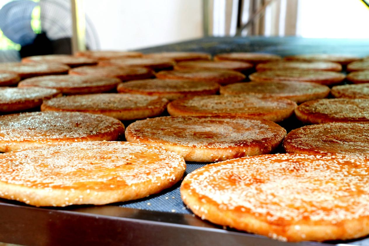 一枚手工月餅的誕生并不簡單,需經過二十多道工序、耗時三至四個小時,面團的揉制與餡料的配比全憑師傅的經驗與手感。正是這份“慢工出細活”的堅持,讓高陂月餅雖外觀樸素,卻以酥軟香甜、甜而不膩的口感贏得眾多消費者的青睞。“中秋期間,我們單日銷量能突破一萬個,復購率達到100%。”蔡壯偉的兒媳羅麗平介紹。她跟隨公公學藝多年,如今已成為這項手藝的重要傳承人。