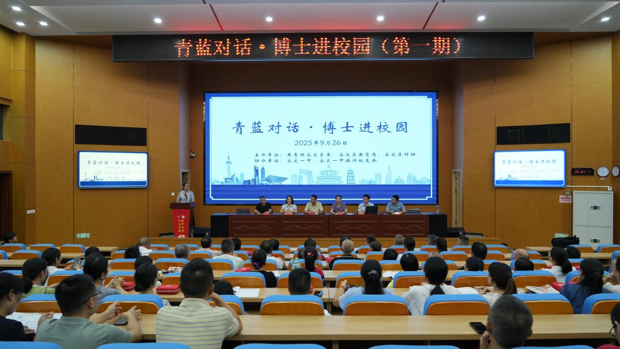 9月26日晚,永定區首期“青藍對話·博士進校園”活動在永定一中學術報告廳舉行。本次活動由共青團永定區委、區教育局、區科協聯合主辦,永定一中及永定一中福州校友會協辦,旨在落實各級人才工作部署,發揮高層次人才引領作用,助力家鄉教育事業發展。