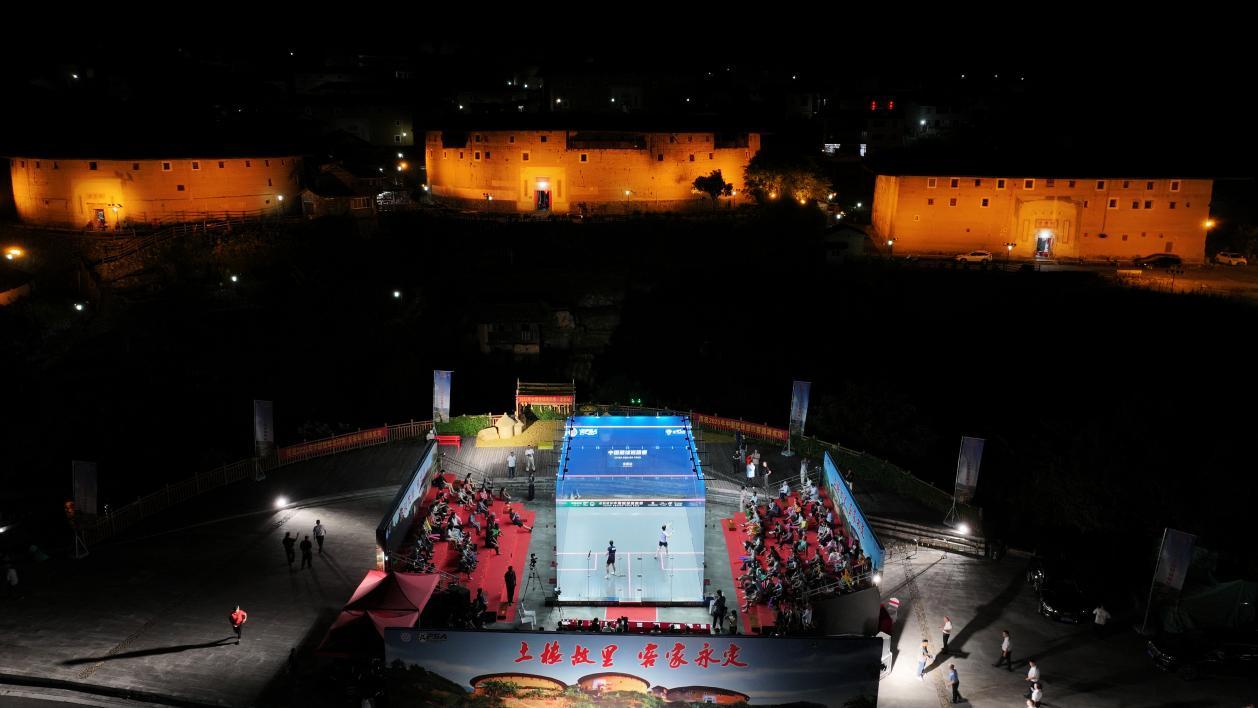 初溪土樓群始建于明代,歷經(jīng)數(shù)百年風(fēng)雨仍保存完好,其獨(dú)特的天然環(huán)形結(jié)構(gòu)不僅造就了完美的聲學(xué)效果,更在本次賽事中為觀眾帶來了獨(dú)一無二的沉浸式觀賽體驗(yàn)。當(dāng)來自中韓兩國(guó)的壁球選手在土樓前展開激烈角逐時(shí),快速的擊球聲與土樓厚重的歷史氣息相互交織,形成了一幅極具沖擊力的畫面——選手們靈活的走位、精準(zhǔn)的擊球與土樓滄桑的墻體相映成趣,既展現(xiàn)了競(jìng)技體育的活力激情,又凸顯了文化遺產(chǎn)的恒久魅力。選手們精湛的球技和頑強(qiáng)的拼搏精神贏得了觀眾的陣陣掌聲。