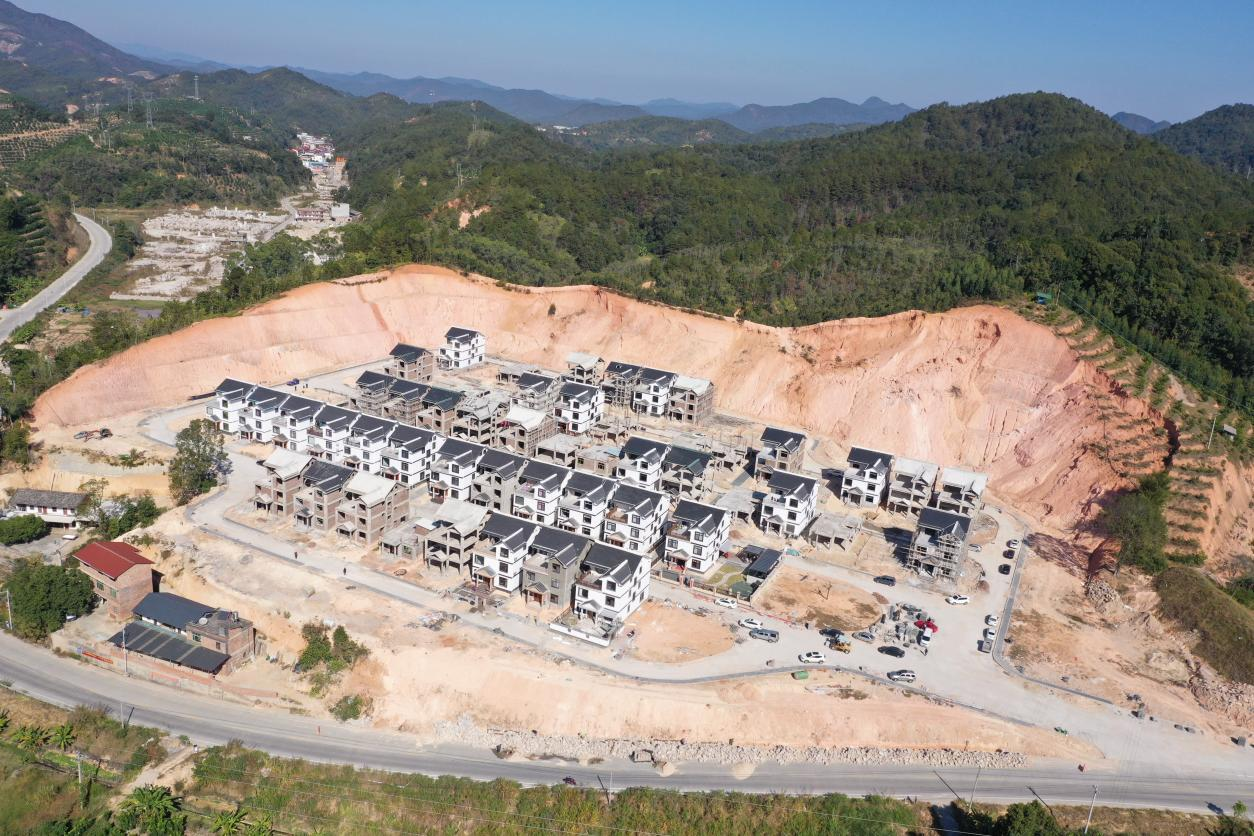 李公斜新村崩塌點(diǎn)位于福建省洪山鎮(zhèn),該區(qū)域于2018年因依山開(kāi)挖建設(shè)形成人工邊坡,西、北、東三側(cè)邊坡高度達(dá)20至40米,坡度達(dá)50至60度,橫向延展約400米。