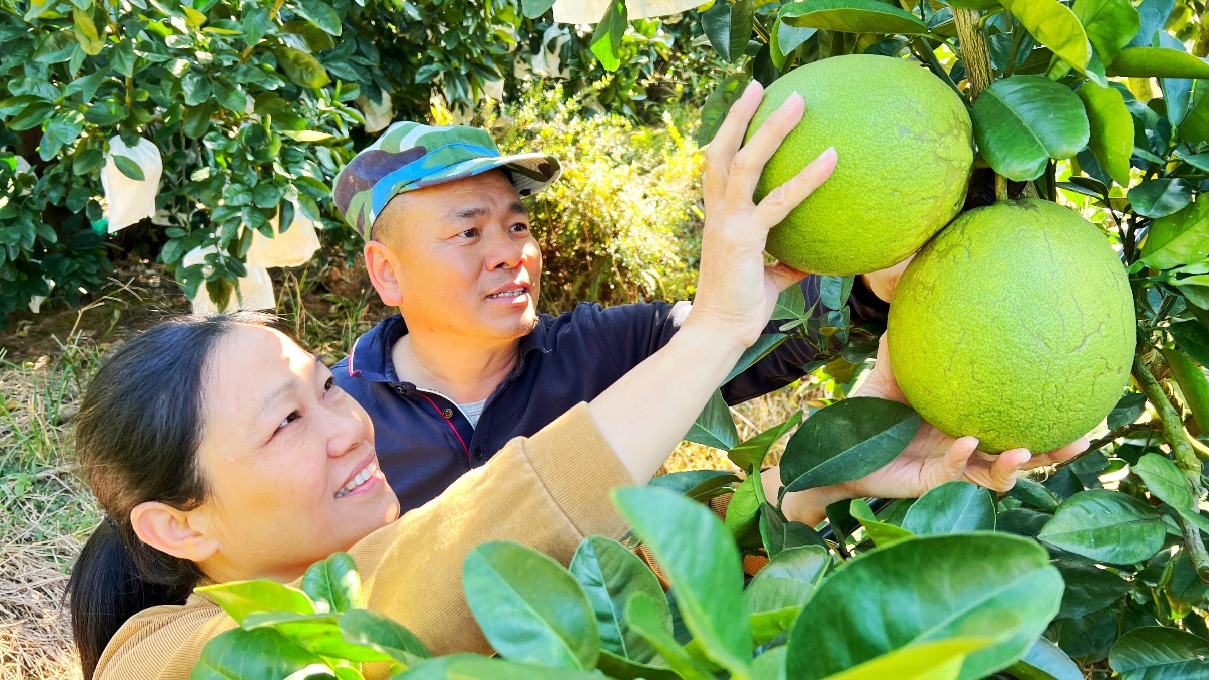 肖志才是永定第一位引進泰國青柚的果農。2021年,經朋友介紹,肖志才萌發了種植泰國青柚的念頭。泰國青柚1斤可賣10多塊錢,傳統白心柚市場價1斤僅1元多。肖志才計劃先引進200棵果樹試種栽培,但資金讓他犯了難。引進新品種,前期投入大。肖志才告訴記者,傳統柚子品種的芽穗大約2元/個,而泰國青柚的芽穗渡洋而來,價格為5元/個,滴灌設備和高枝嫁接也是一筆不小的開銷。 “一開始,仙師信用社給了我5萬元的免擔保貸款,享受基準利率優惠政策。這筆‘及時雨’般的資金,不僅解決了我初期種植成本高昂的難題,更讓我得以引進優質泰國青柚種苗,修建標準化果園設施,為今日的豐收打下堅實基礎。” 肖志才說。