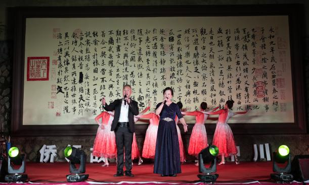 晚7時(shí)許,開(kāi)場(chǎng)舞《盛世歡歌》以激昂的鼓點(diǎn)拉開(kāi)演出序幕。整場(chǎng)演出以經(jīng)典影視歌曲為主線,將僑鄉(xiāng)故事融入多元藝術(shù)形式:永定土樓原創(chuàng)歌曲《永遠(yuǎn)的家園》充滿本土風(fēng)情,唱出了對(duì)家鄉(xiāng)的深情眷戀;古箏與中國(guó)鼓合奏《戰(zhàn)臺(tái)風(fēng)》剛?cè)岵?jì),展現(xiàn)了中華民族堅(jiān)韌不屈的精神氣概;男女對(duì)唱《阿哥出門下南洋》娓娓道來(lái)華僑遠(yuǎn)渡重洋的牽掛與鄉(xiāng)愁;男聲獨(dú)唱《新賣貨郎》則生動(dòng)復(fù)刻了僑鄉(xiāng)往日的生活氣息。此外,《陽(yáng)光路上》《海上明月》等節(jié)目接連登場(chǎng),龍巖市紅山茶合唱團(tuán)的演員們通過(guò)歌舞、器樂(lè)、書(shū)畫(huà)等豐富形式,為觀眾呈現(xiàn)了一場(chǎng)充滿“僑”韻的文化盛宴。