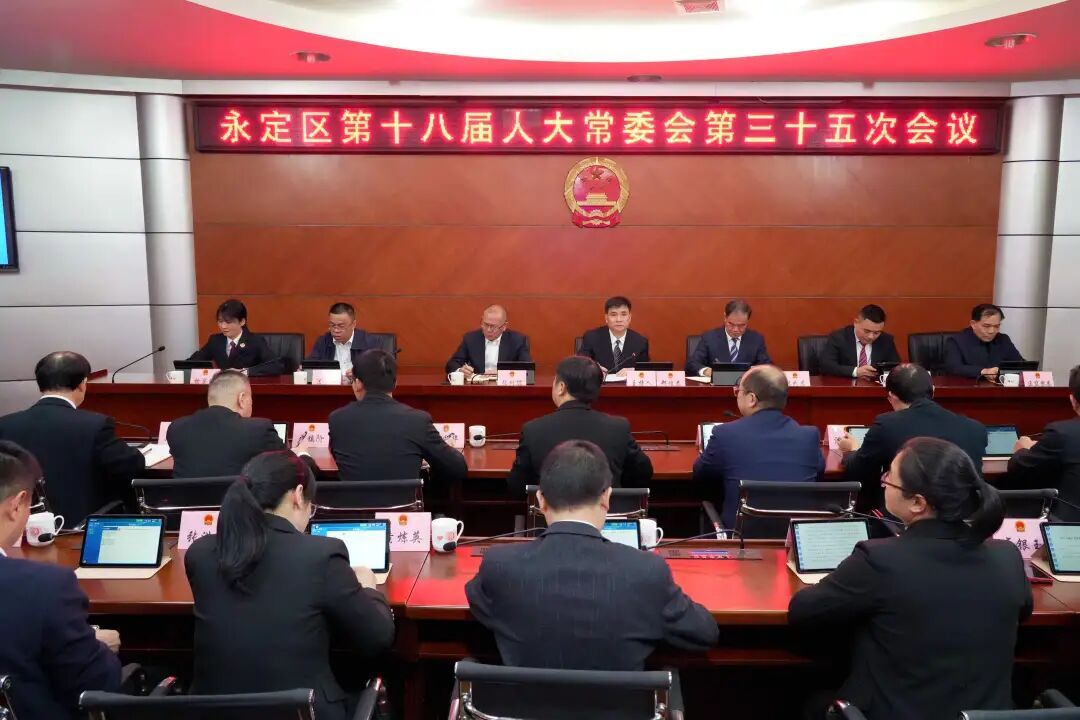 12月26日下午,永定區第十八屆人民代表大會常務委員會第三十五次會議召開。區人大常委會主任鄭煌泰主持會議。區政府常務副區長盧權國,區法院院長曾健彬、區檢察院檢察長邱頎,區監察委員會負責人、區政府辦負責人、區人大常委會機關各委辦負責人及駐機關紀檢監察組負責人列席會議。