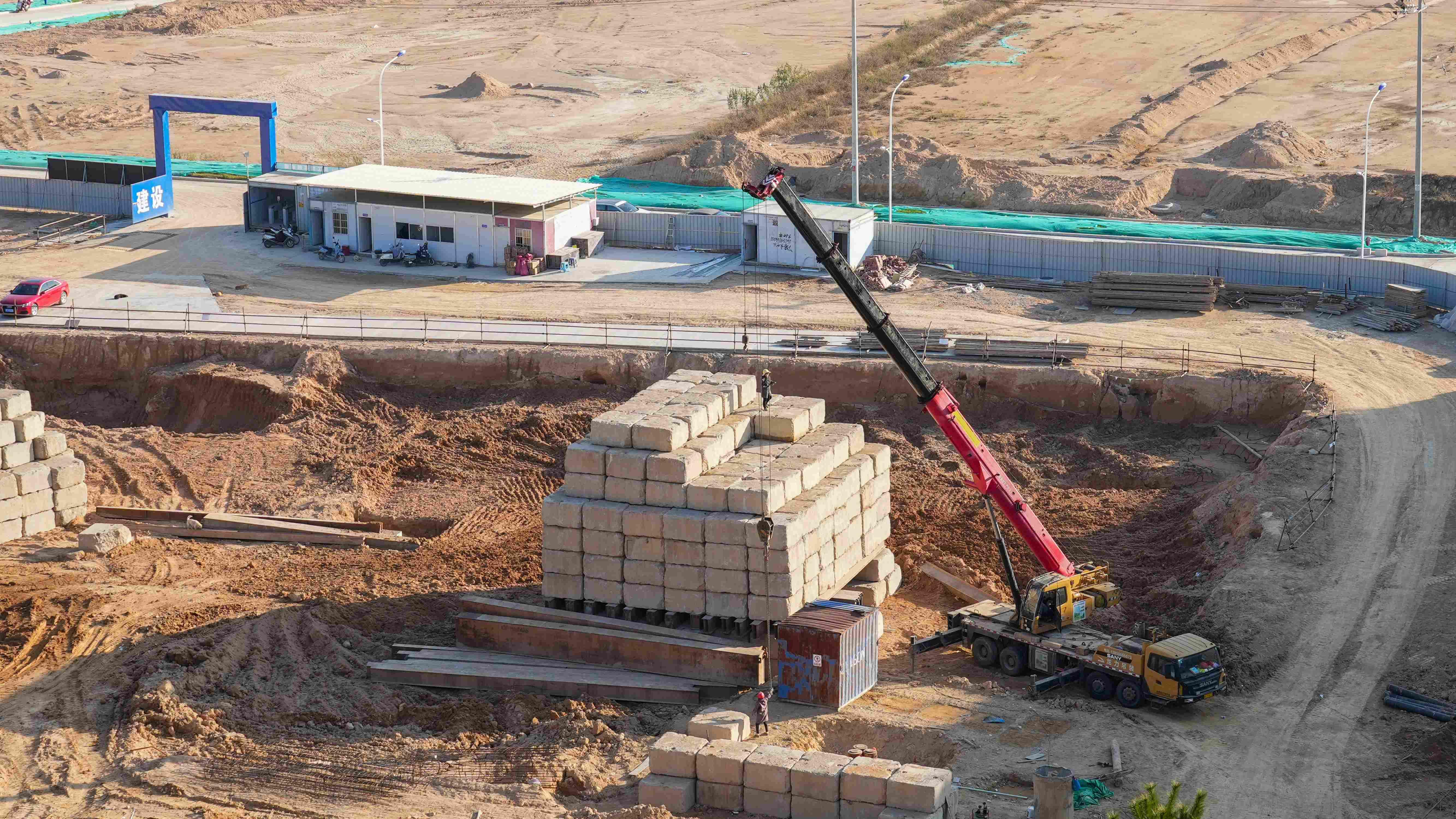 同樣繁忙的二期建設現場。在 3 號地塊上,樁基施工正有序開展,一臺臺大型機械揮舞著“巨臂”,發出陣陣轟鳴,工人們趁著晴好天氣,爭分奪秒地推進基礎工程。