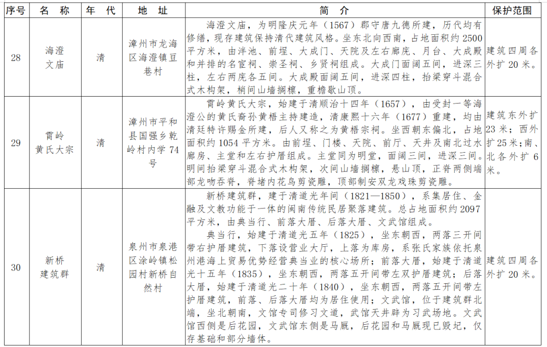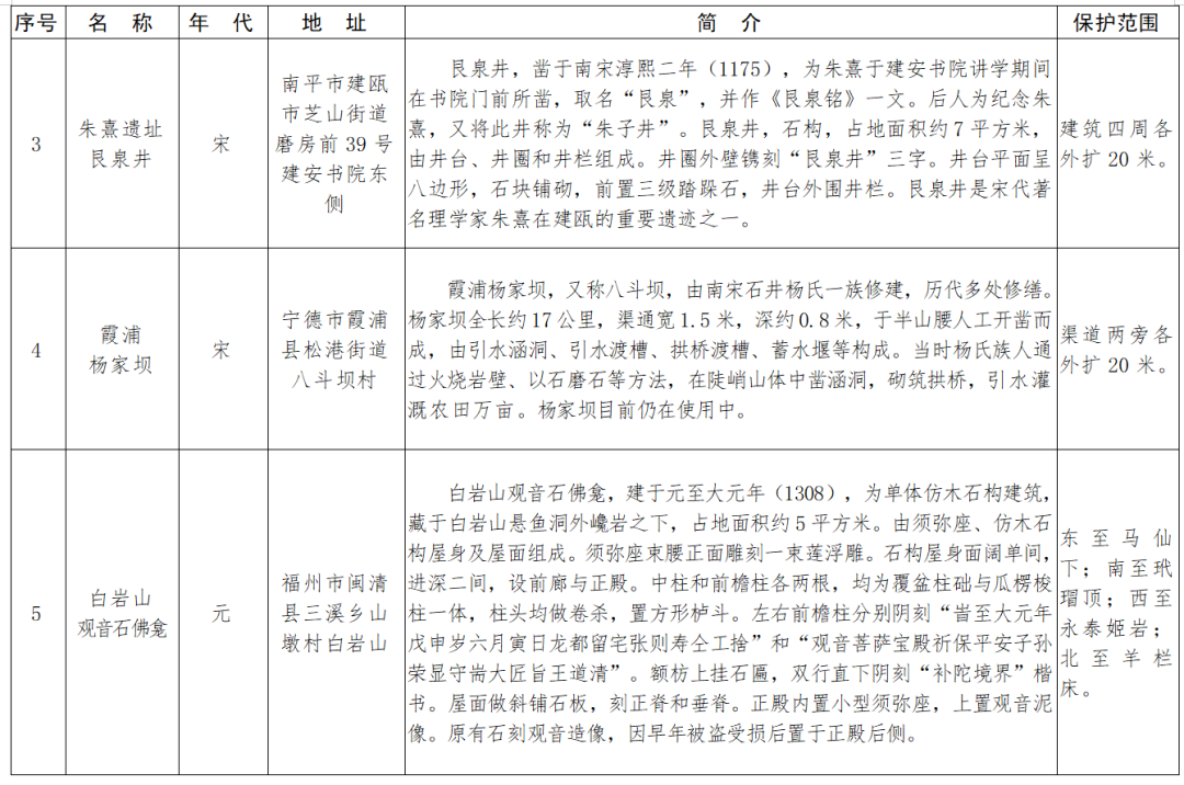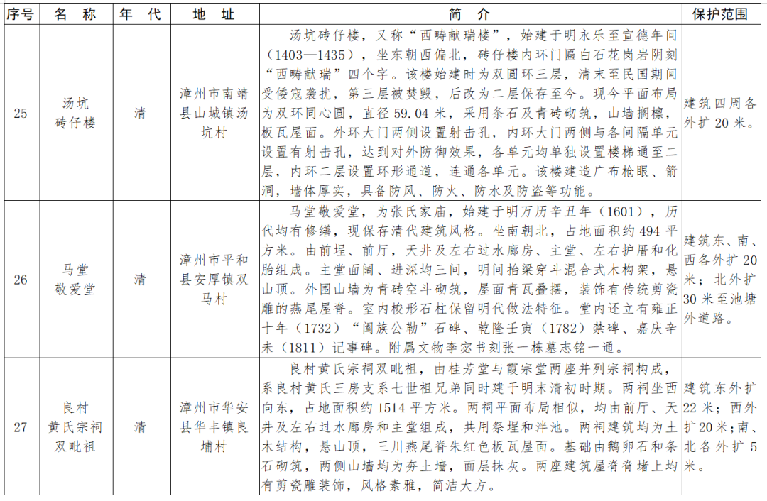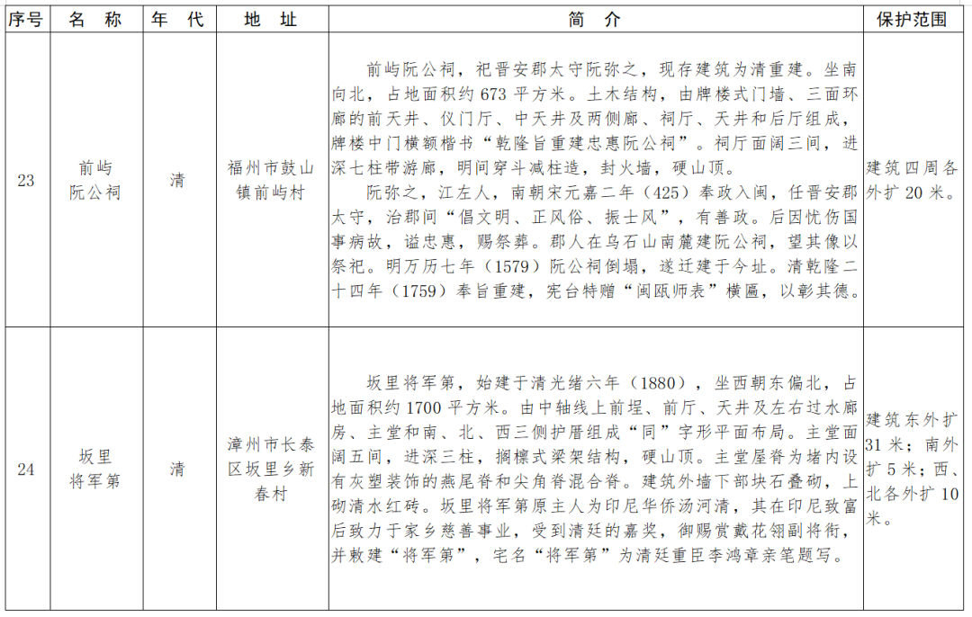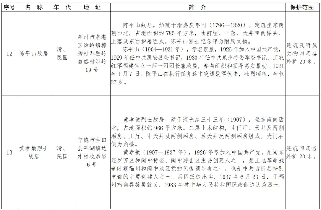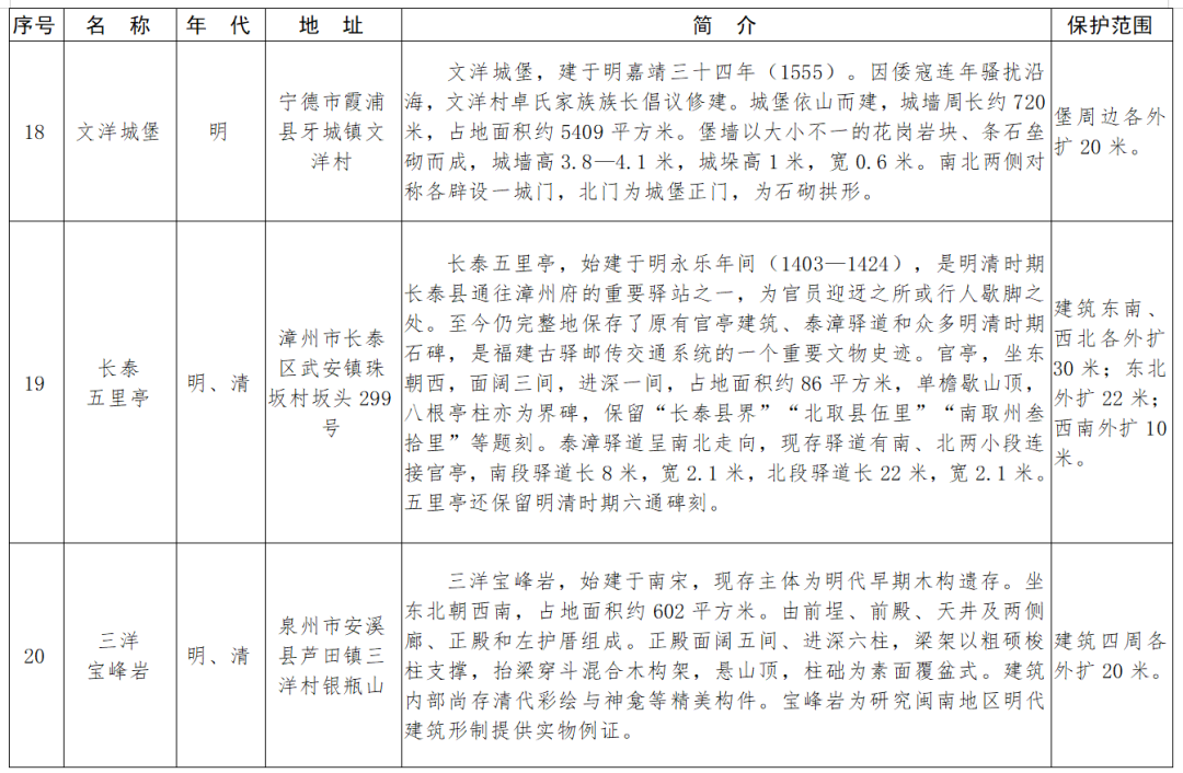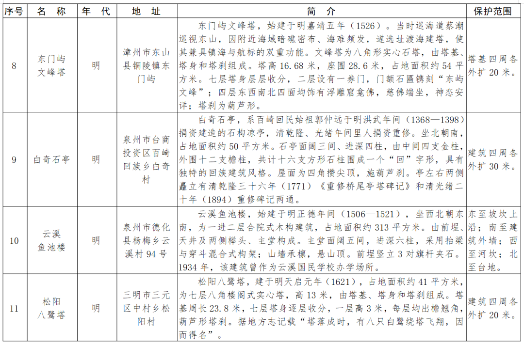 福建省第十一批省級(jí)文物保護(hù)單位名單及保護(hù)范圍