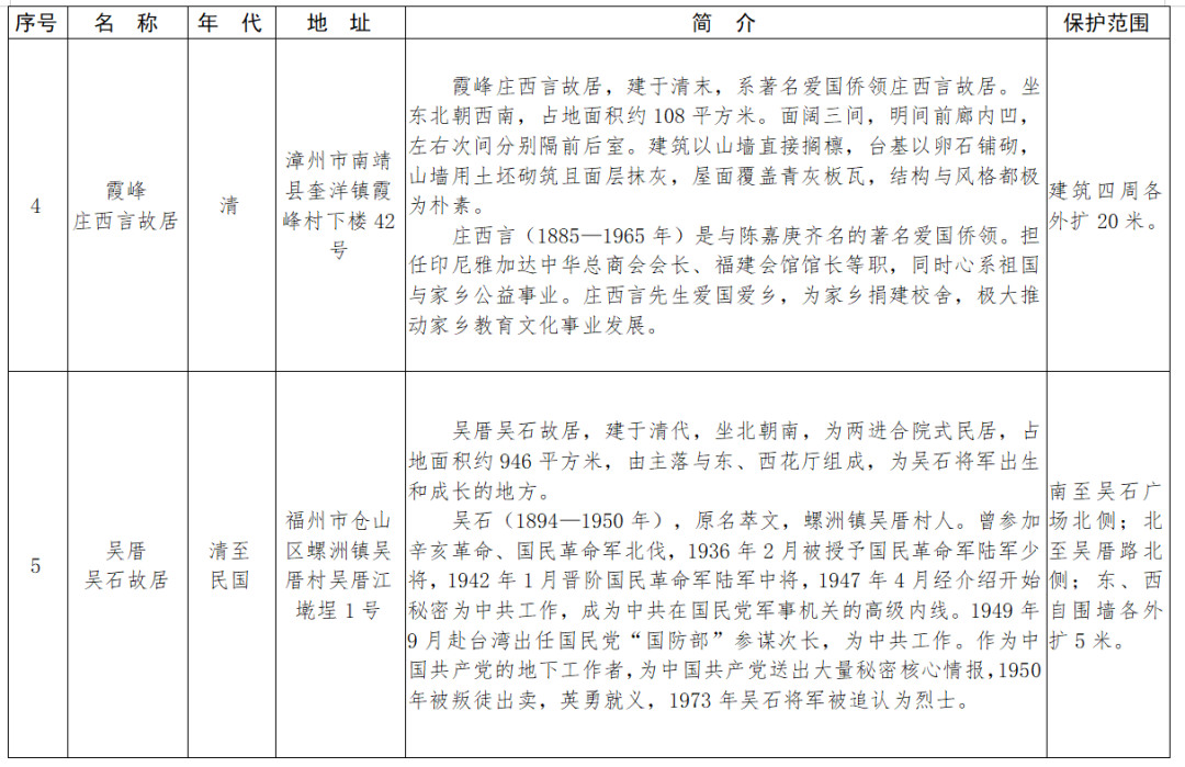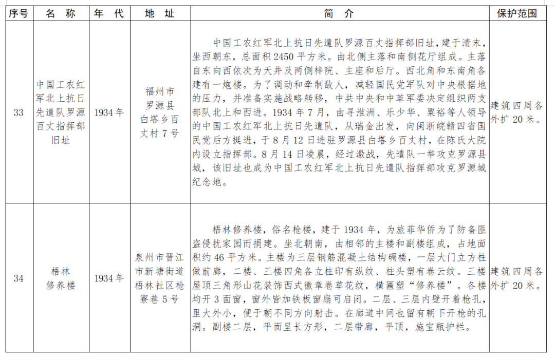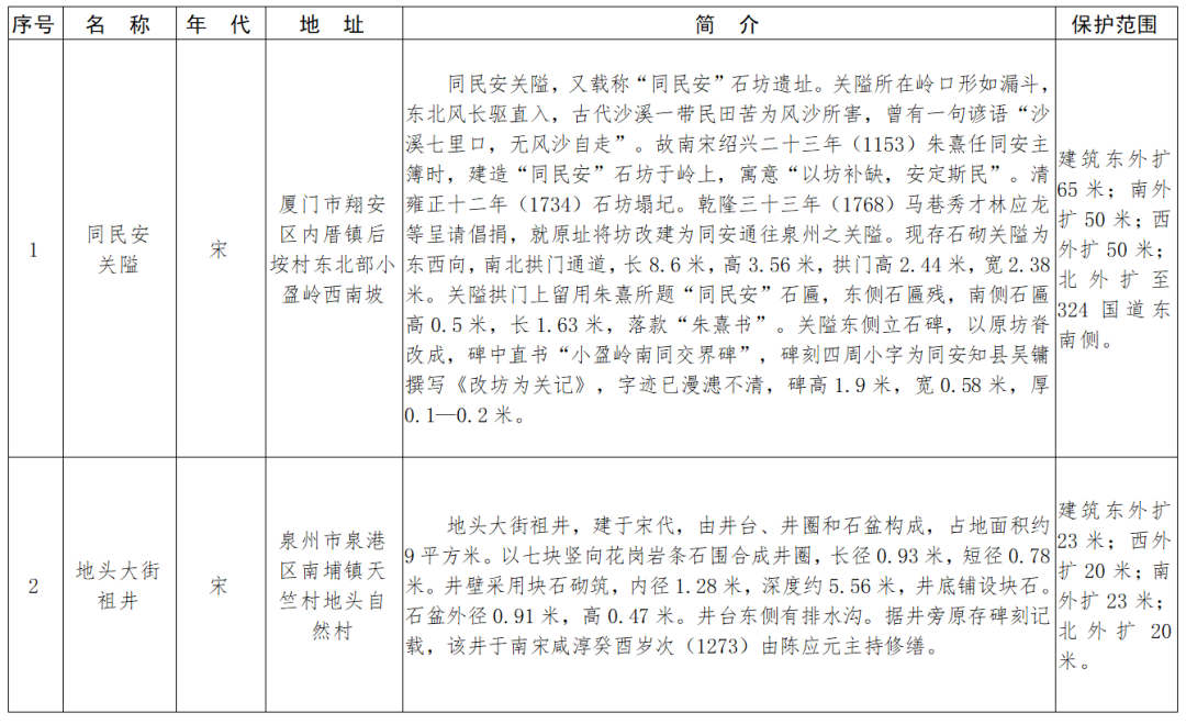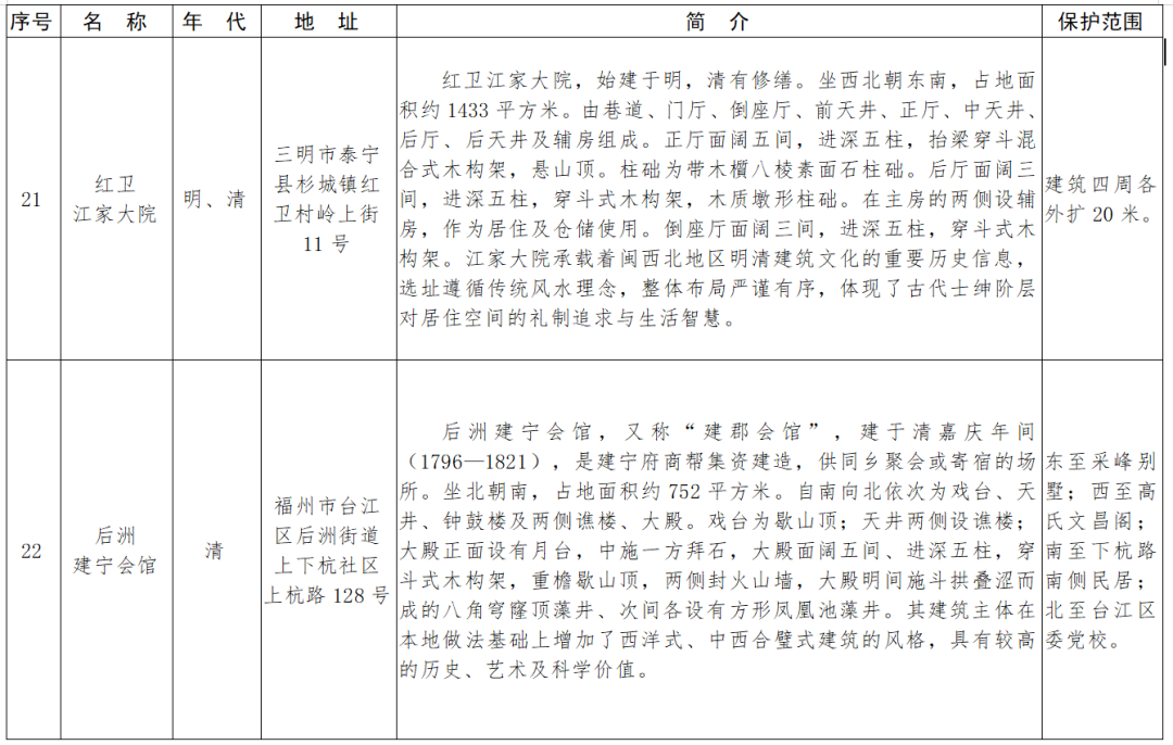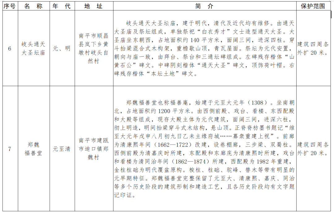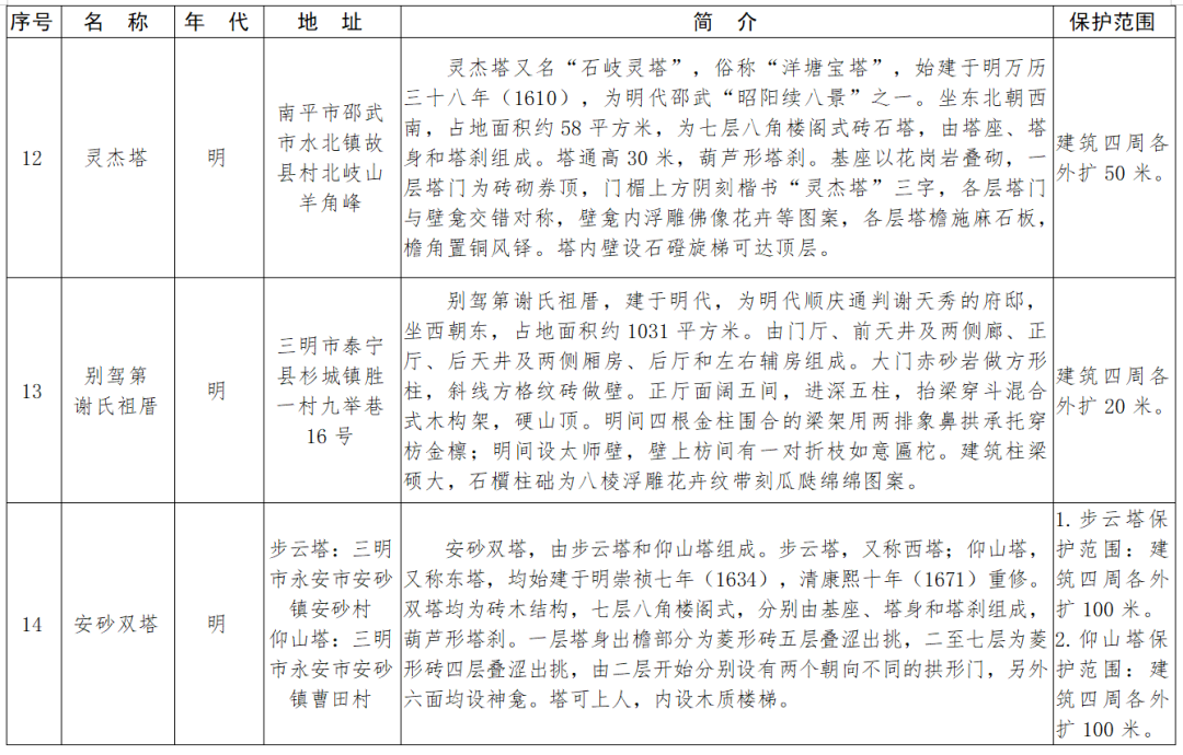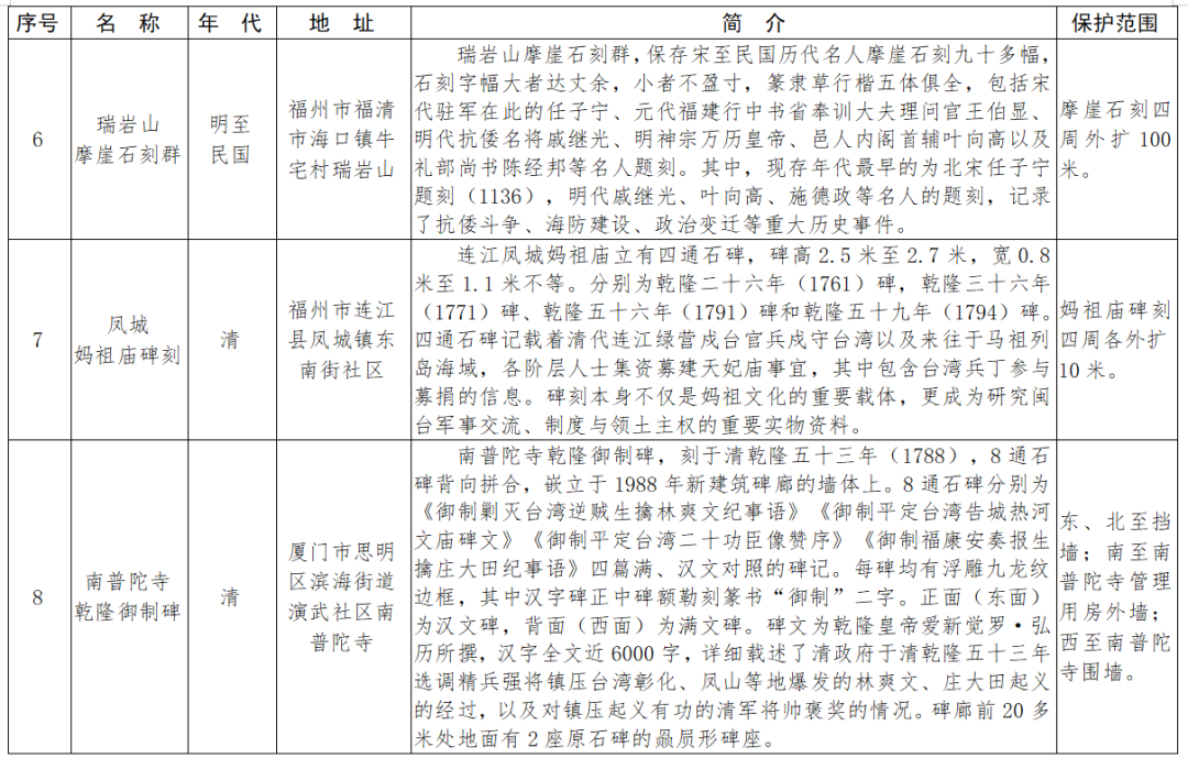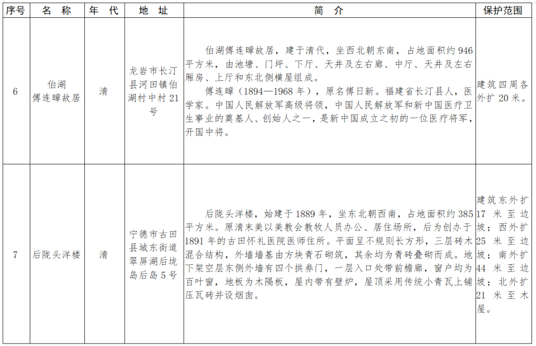 福建省第十一批省級(jí)文物保護(hù)單位名單及保護(hù)范圍