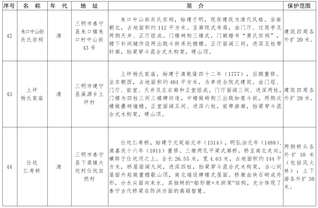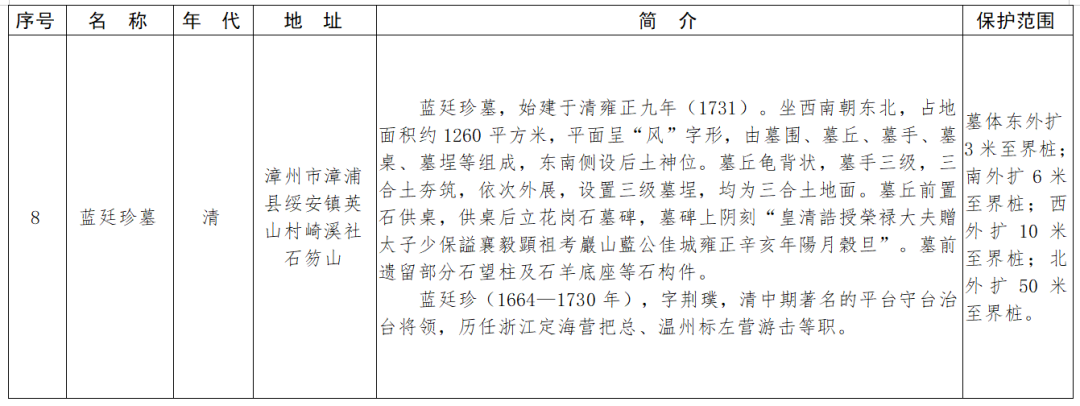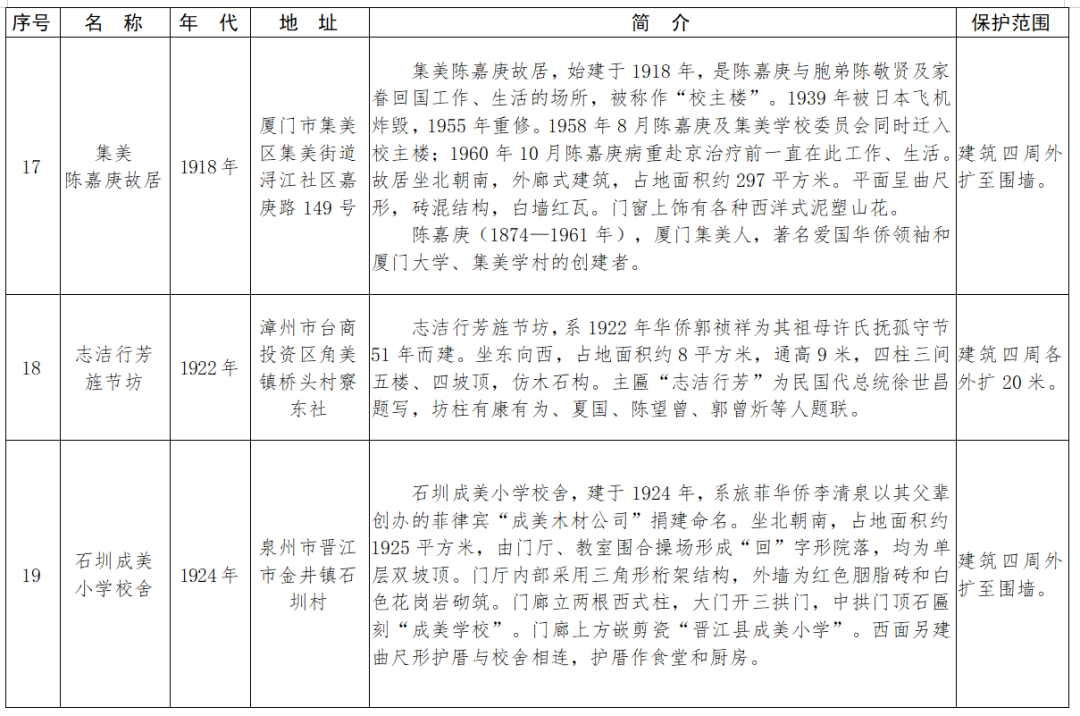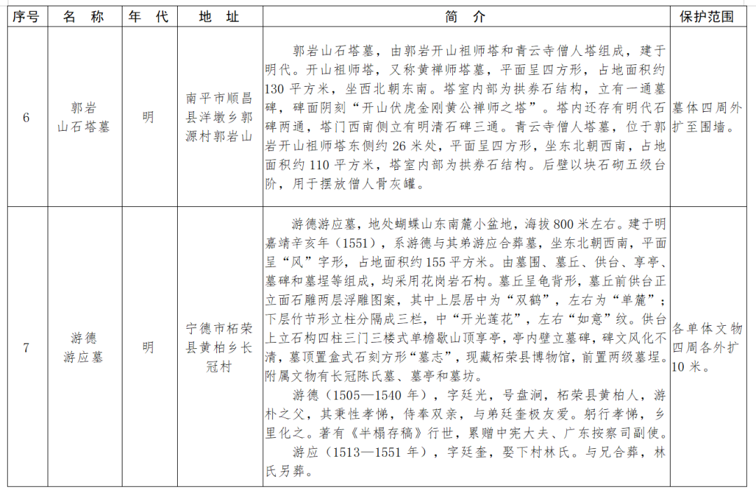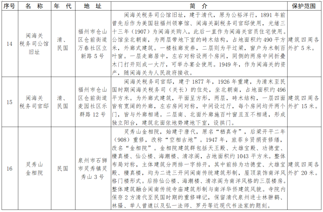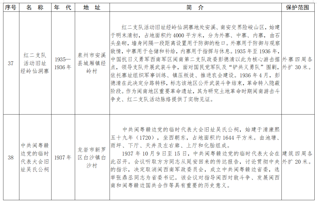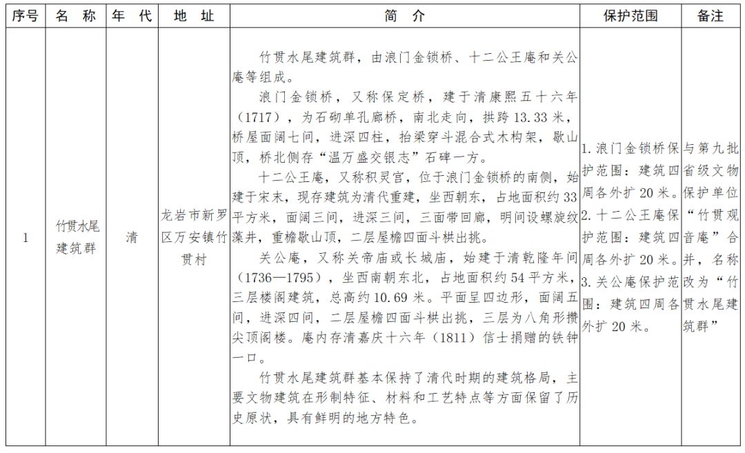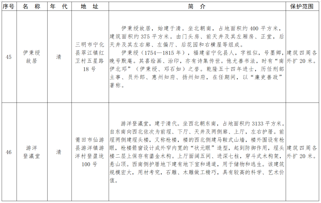 福建省第十一批省級(jí)文物保護(hù)單位名單及保護(hù)范圍