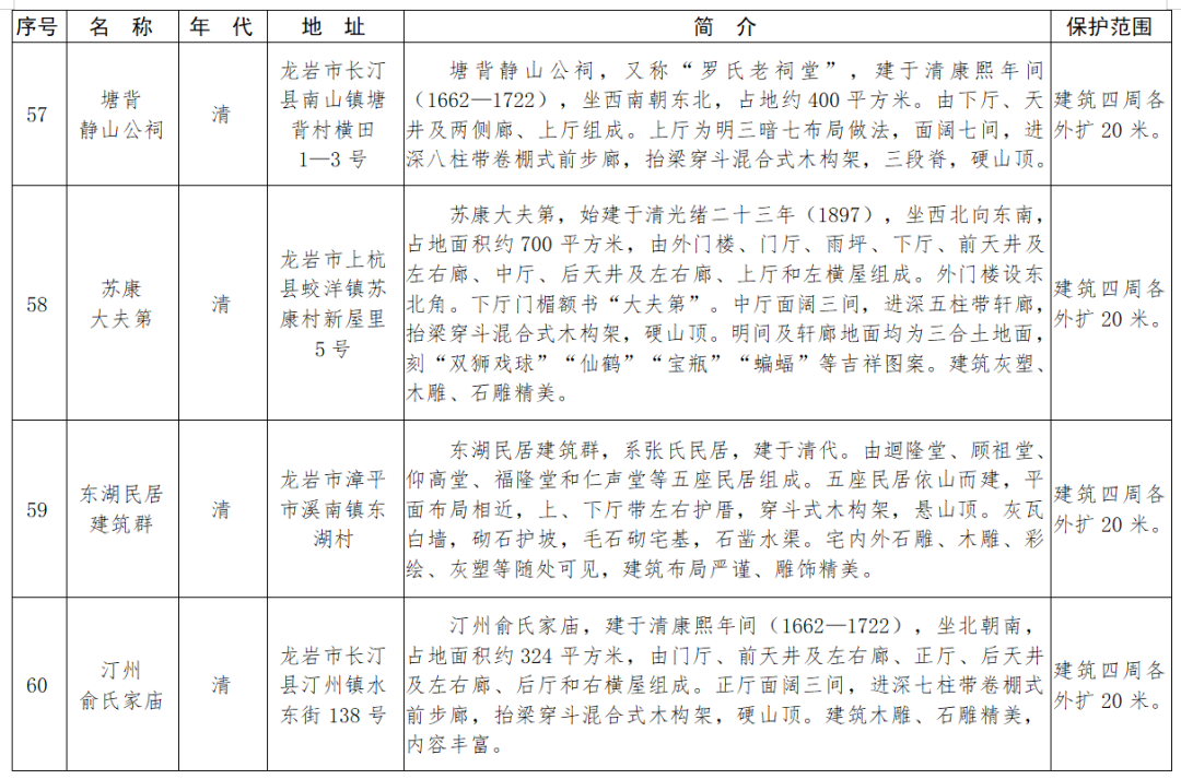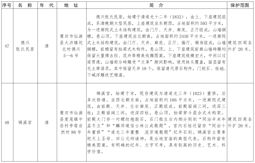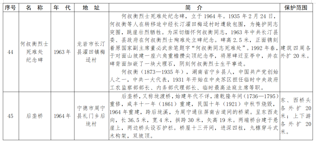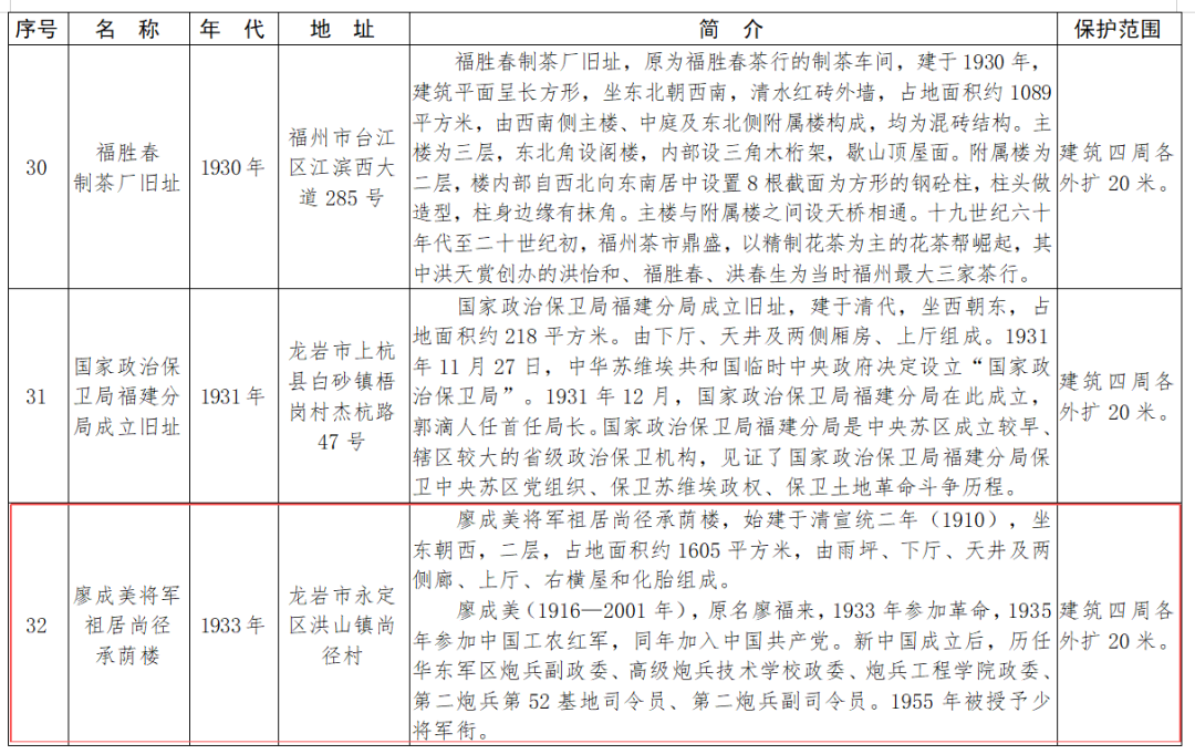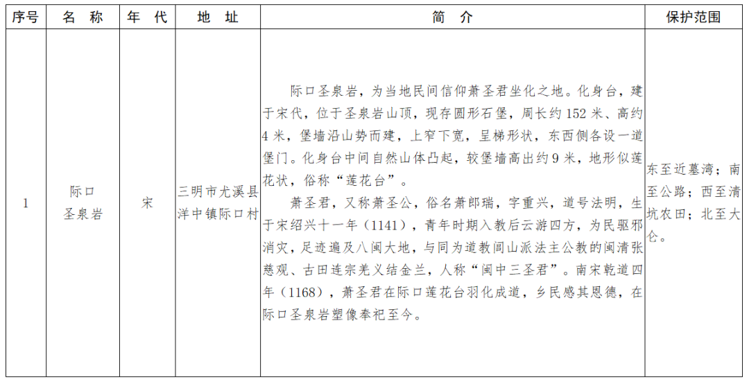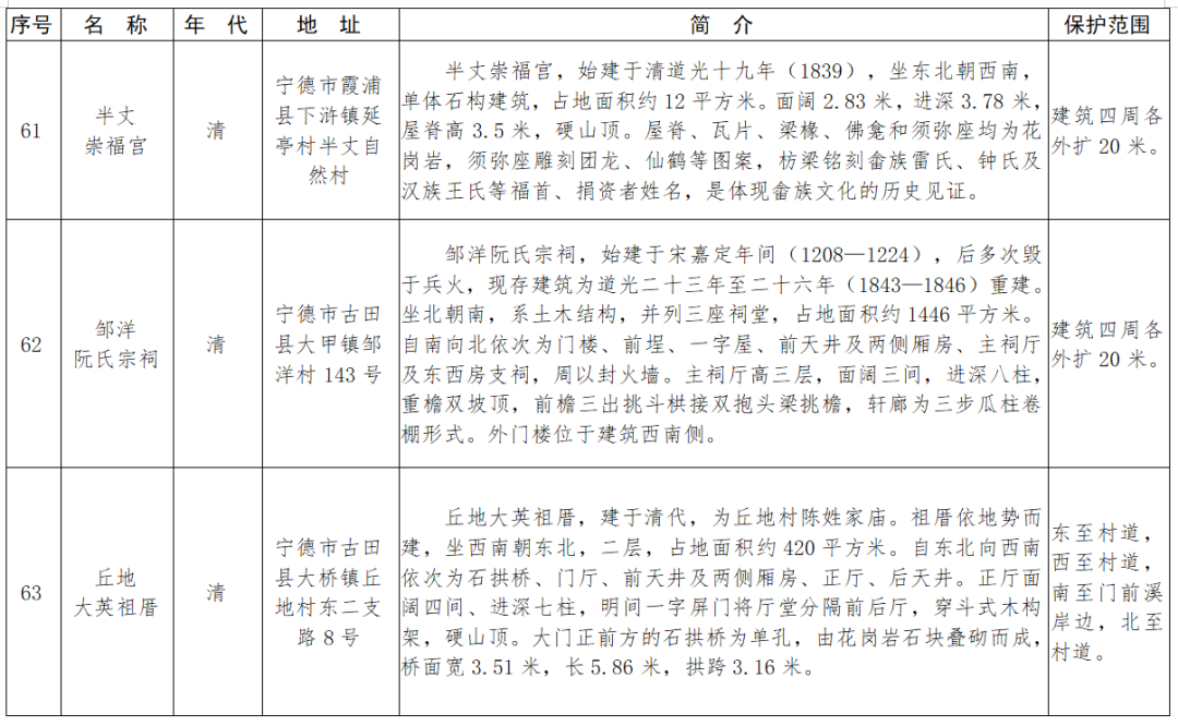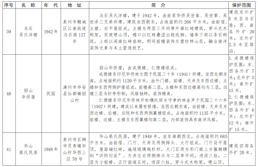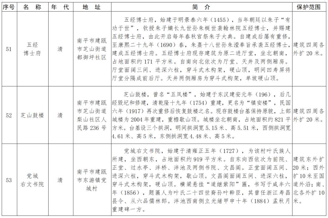 福建省第十一批省級(jí)文物保護(hù)單位名單及保護(hù)范圍