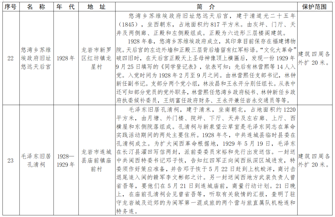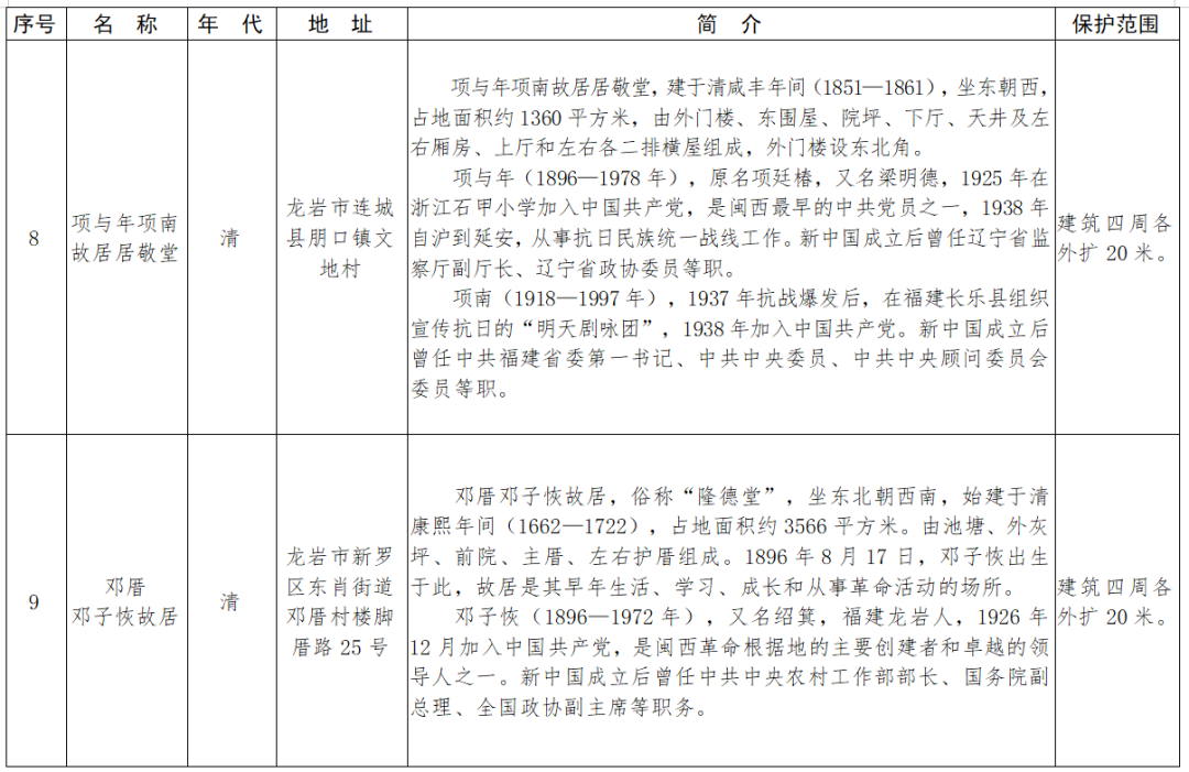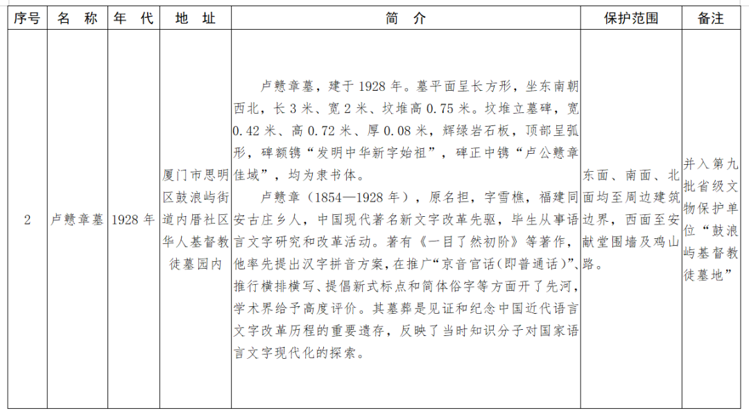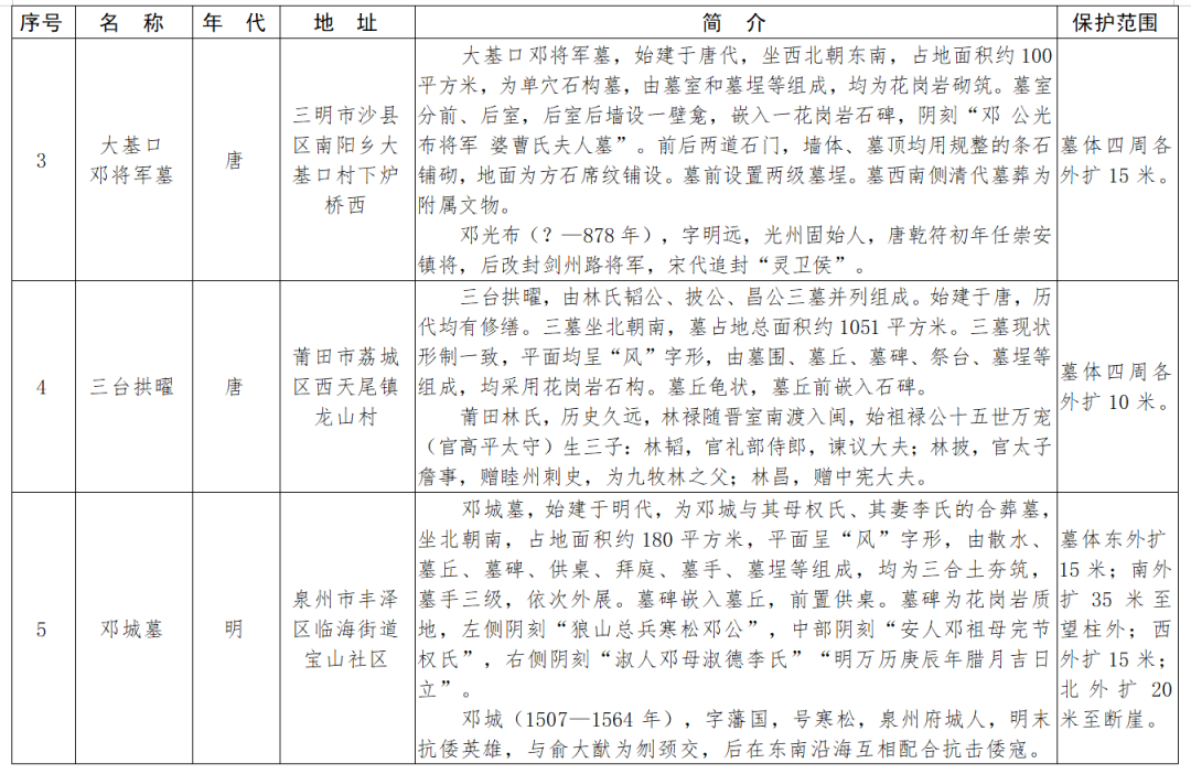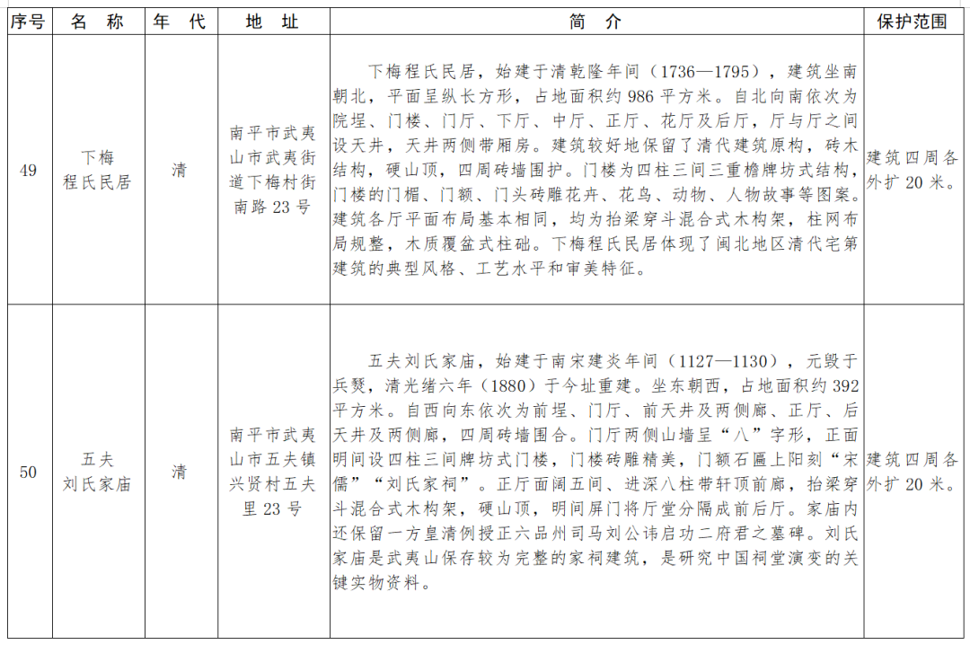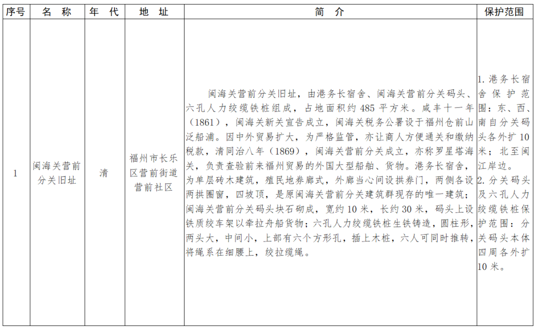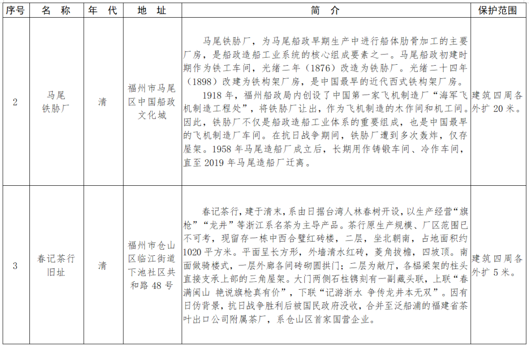 福建省第十一批省級(jí)文物保護(hù)單位名單及保護(hù)范圍