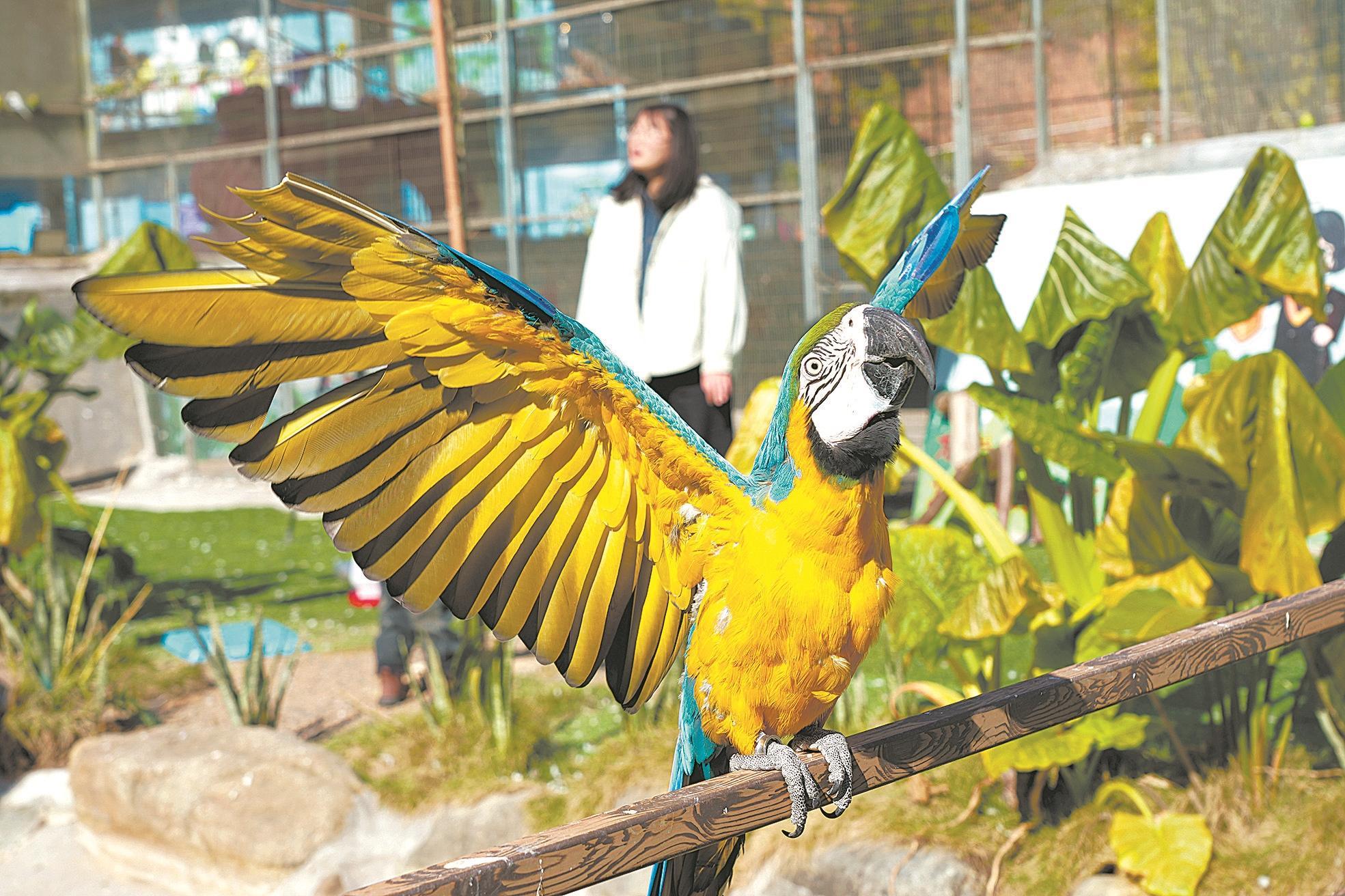 “這里充滿了濃濃的童趣,孩子不僅能近距離觀察鸚鵡,還能了解它們的生長習性和生活知識,極大激發了他們的好奇心。”游客李翠琳說,“這種寓教于樂的方式特別適合親子游。孩子在這里玩了一整天都舍不得走。” “我們從最初僅有百余對鸚鵡起步,經過多年發展,如今鸚鵡存欄量已達到3萬余只。去年,鸚鵡市場行情十分火爆,銷售額漲幅達200%左右,節假日游客量也持續攀升,發展勢頭一片大好。”吳秀虹說道。 鸚鵡觀光園內的金剛鸚鵡