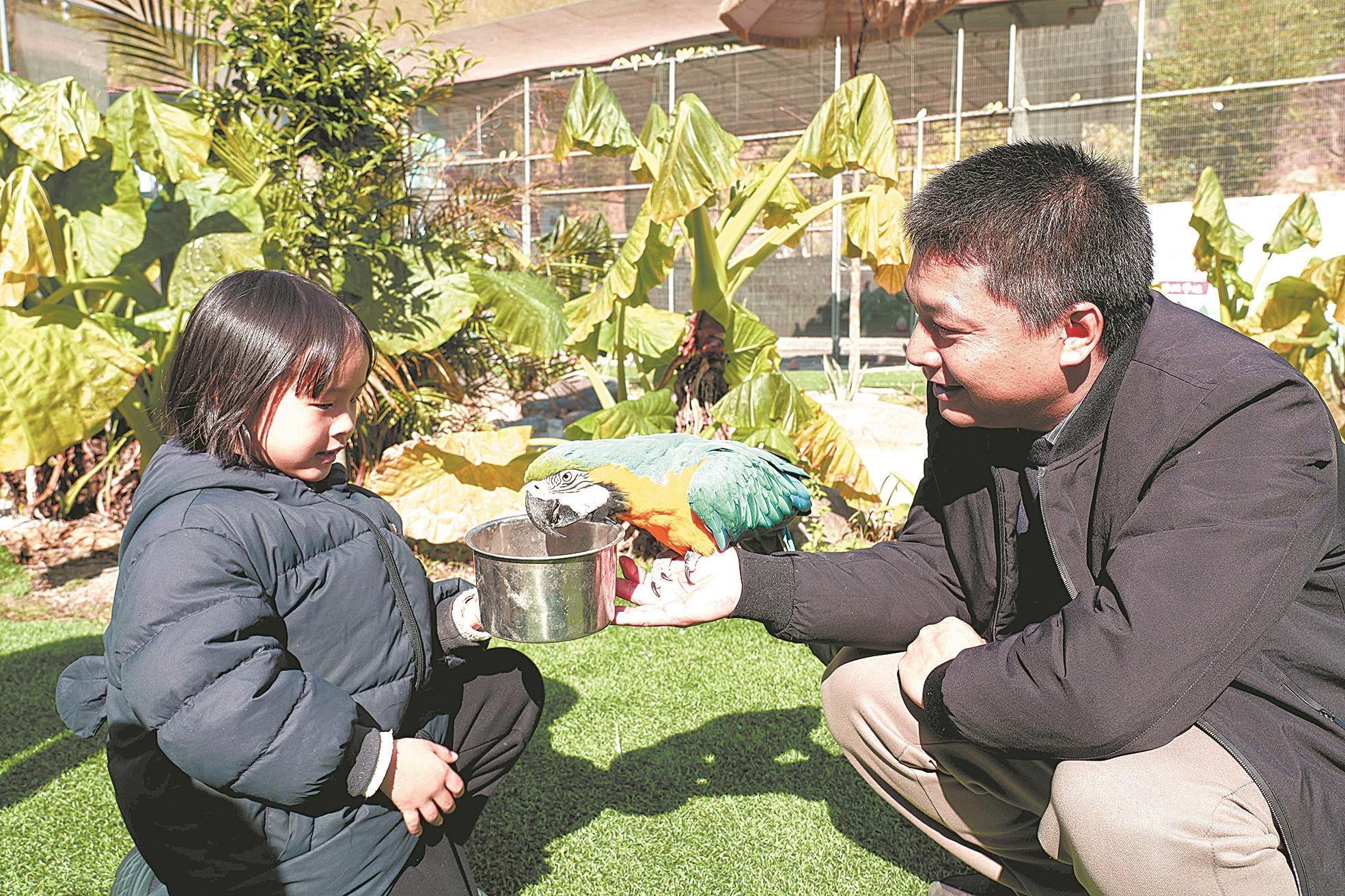 近日,筆者走進鸚鵡觀光園,只見整齊的籠舍內,各類五彩斑斕的鸚鵡靈動穿梭,清脆鳥鳴此起彼伏,勾勒出一幅生機盎然的畫卷。園區負責人李新源和吳秀虹夫婦介紹,目前,園區日均鸚鵡訂單量超800單。 每逢周末和節假日,這里更是熱鬧非凡,游人如織。自2024年開業以來,園區累計接待游客已突破20萬人次,這座集鸚鵡繁育銷售、觀賞游樂、科普研學于一體的綜合性主題園區,已成為當地農旅融合的璀璨名片。 “這里的鸚鵡太可愛啦。有的會模仿人說話,有的會玩各種有趣的游戲,特別聰明。”前來游玩的小朋友廖易妍說。 小朋友在鸚鵡觀光園內學習投喂鸚鵡