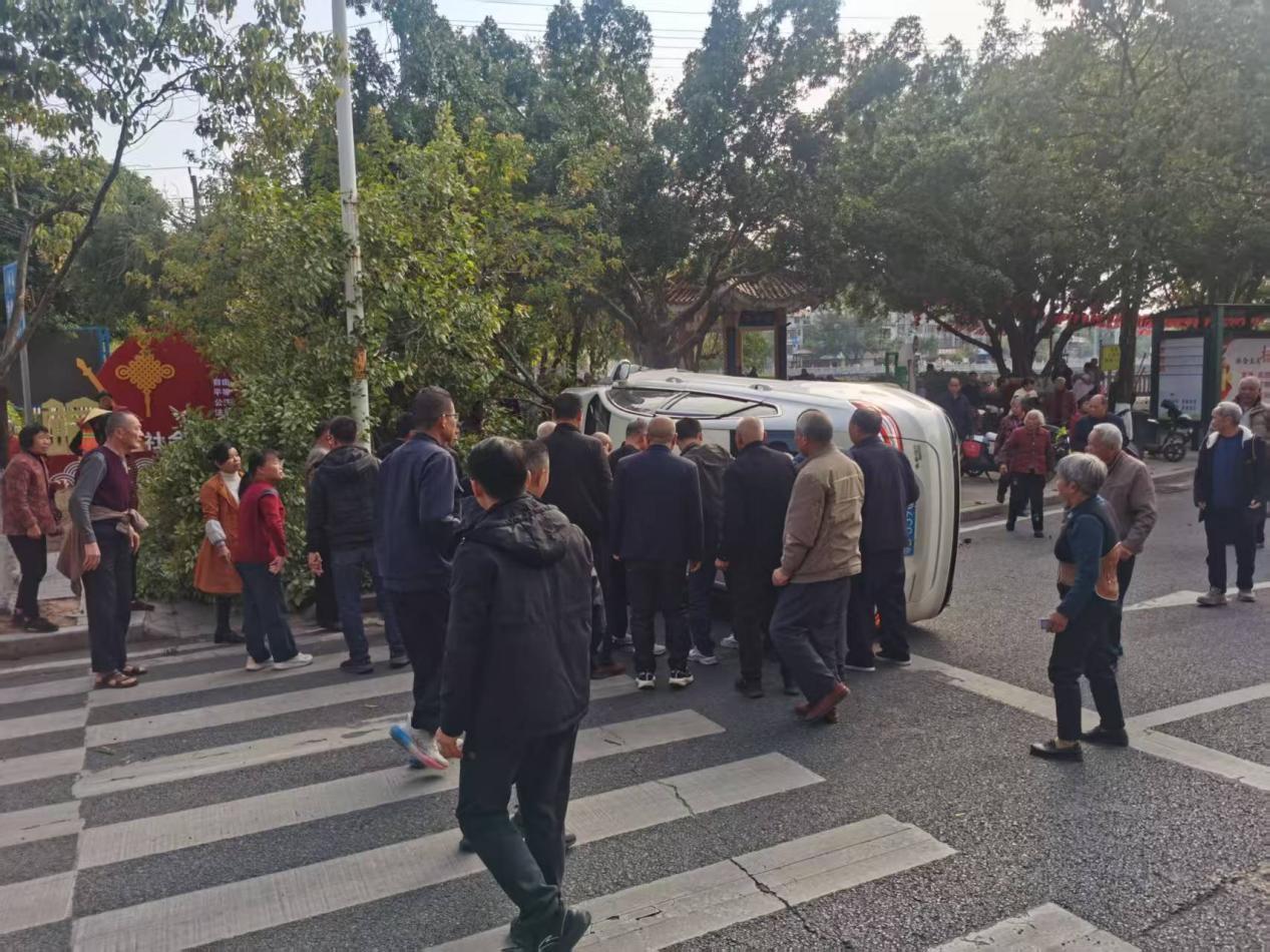 “砰”的一聲巨響后,正在附近工作的金鳳社區干部立即沖向現場。面對側翻車輛和被困人員,社區干部與熱心居民合力協作,有人俯身抬車,有人扶穩車身,齊聲喊著號子,憋足力氣將車輛緩緩放平。十多分鐘后,車輛終于被扶正,被困人員被安全解救。