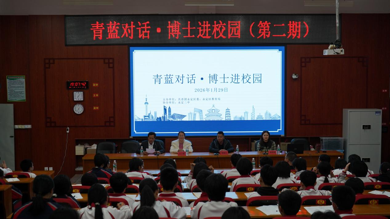 1月29日晚,由團區委、區教育局主辦的“青藍對話·博士進校園”活動在永定二中舉行。