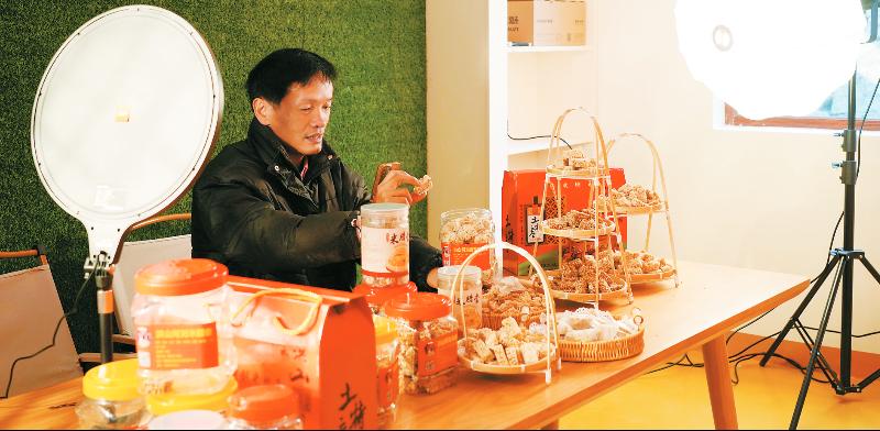 劉榮芬正在直播 1月22日,走進永定區(qū)洪山鎮(zhèn)尚徑村,甜香撲面而來。“米臘嘗”手藝人劉榮芬正在灶臺前忙得不可開交。一口鐵鍋、一方木模,是他用了四十年的老伙計,而此刻對準鍋灶的手機鏡頭,把這份傳統(tǒng)年味傳向全國各地。鏡頭下,劉師傅動作麻利:炒香的大米、花生、芝麻按比例拌勻,轉(zhuǎn)身倒入熬至起絲的麥芽糖鍋中,快速翻攪讓每一粒食材都裹滿晶瑩糖汁,隨即盛入木制模具,木推子鋪平、木滾筒壓實,待糖汁冷卻定型,快速切塊裝罐。香氣彌漫的制作現(xiàn)場,許多鄉(xiāng)親慕名前來嘗鮮訂購;直播間里,網(wǎng)友的點贊與評論刷屏。 “每年就盼著劉師傅的米臘嘗出爐,咬上一口香酥甜脆,滿口都是小時候的味道。”永定區(qū)洪山鎮(zhèn)尚徑村村民溫壽平說,“我現(xiàn)場就買了一些準備過年!” “我們從農(nóng)歷九月份開始趕制米臘嘗,到現(xiàn)在已經(jīng)做了五六千斤,大多都是老客戶回購,還有不少新客戶通過線上直播下單,生意比往年更紅火。”劉榮芬一邊制作一邊介紹。 年近六旬的劉榮芬,做“米臘嘗”已經(jīng)四十多年。16歲起他跟著父母學手藝,十幾道工序爛熟于心:炒米、配料、熬糖、壓模,樣樣講究,尤其是熬糖——火大一分則焦,慢一秒則黏,這個秘訣是他四十多年自己悟出的門道。 在永定鄉(xiāng)村素有“冬至做臘嘗,年味滿廳堂”的說法,過去一入冬,家家戶戶都飄起這股甜香。如今,許多年輕人外出,會做的人越來越少。劉榮芬始終堅守,不僅讓老味道得以延續(xù),還帶動村里富余勞動力一起制作。一塊塊“米臘嘗”,成了鄉(xiāng)親們增收的“甜路子”。 新潮零食層出不窮,卻始終取代不了“米臘嘗”在當?shù)厝诵闹械奈恢谩H缃瘢瑒s芬守著老手藝,緊跟新潮流,一邊當主播在鏡頭前講解制作工序、與網(wǎng)友互動,一邊把客家米臘嘗的故事講給更多人聽,讓這份傳統(tǒng)美味借著直播的東風出圈。對劉榮芬而言,制作米臘嘗早已超越了生計本身,更是一份傳承客家手工技藝的責任與堅守。這口飄香的“米臘嘗”,不僅在手工傳承中延續(xù)客家技藝,還在直播間中傳遞著鄉(xiāng)村溫情,為永定鄉(xiāng)村振興的畫卷,添上了一筆傳統(tǒng)文化煥新的亮色。
