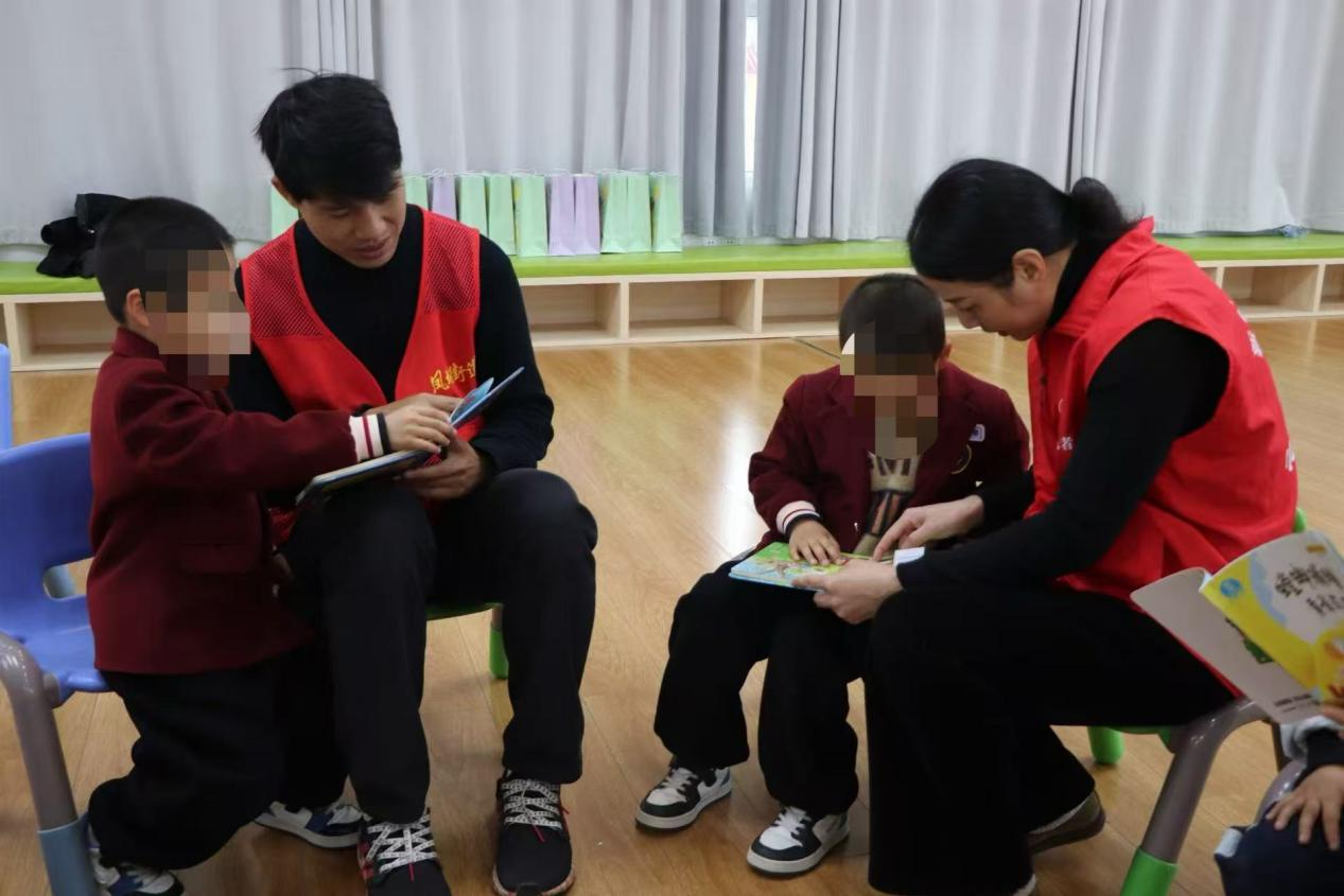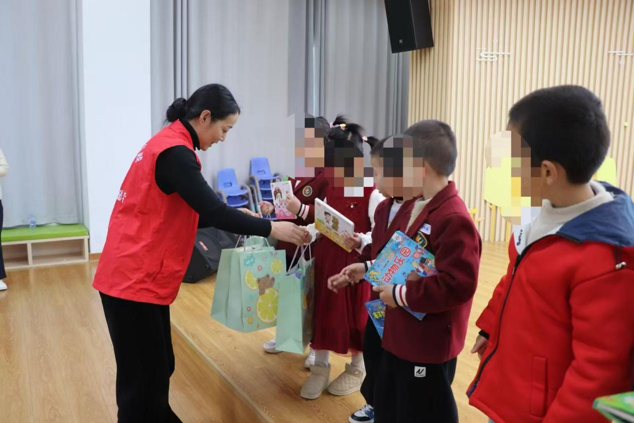 在金鳳幼兒園的音體室里,一場充滿歡聲笑語的互動(dòng)活動(dòng)率先拉開帷幕,隨后志愿者們陪伴孩子們一起閱讀繪本,最后為孩子們送上了彩筆、黏土、繪本等禮物,孩子們臉上綻放出燦爛的笑容。