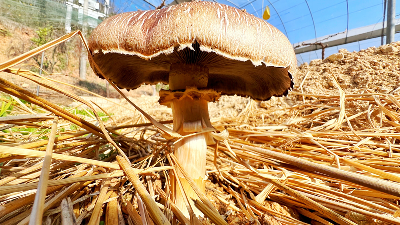 江源春口中的“空窗期”,正是葡萄采收后到次年掛果前的土地閑置期。大球蓋菇的成功套種,不僅填補(bǔ)了這段時間的空白,更實(shí)現(xiàn)了“一季多收”的高效農(nóng)業(yè)模式。然而,這朵蘑菇帶來的驚喜遠(yuǎn)不止于此。如果說引種成功是技術(shù)上的“破冰”,那么它的種植模式則是永定農(nóng)業(yè)的一場“綠色革命”。在永定,每年秋收后,堆積如山的稻草秸稈一直是令人頭疼的“老大難”:焚燒污染環(huán)境,自然腐爛又耗時太長。而大球蓋菇,恰恰是自然界中“吃”秸稈的高手。